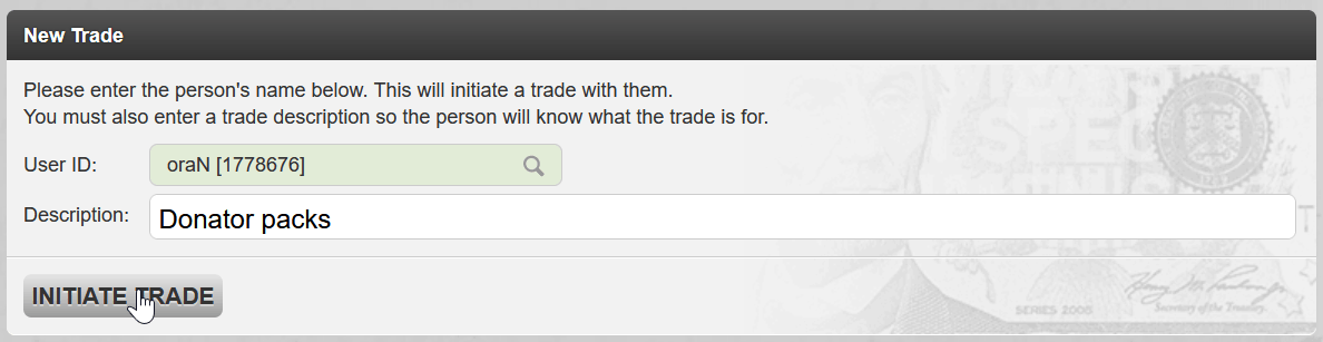 You can type literally anything in there and then it will let you initiate trade, preferably just describe what your trading.