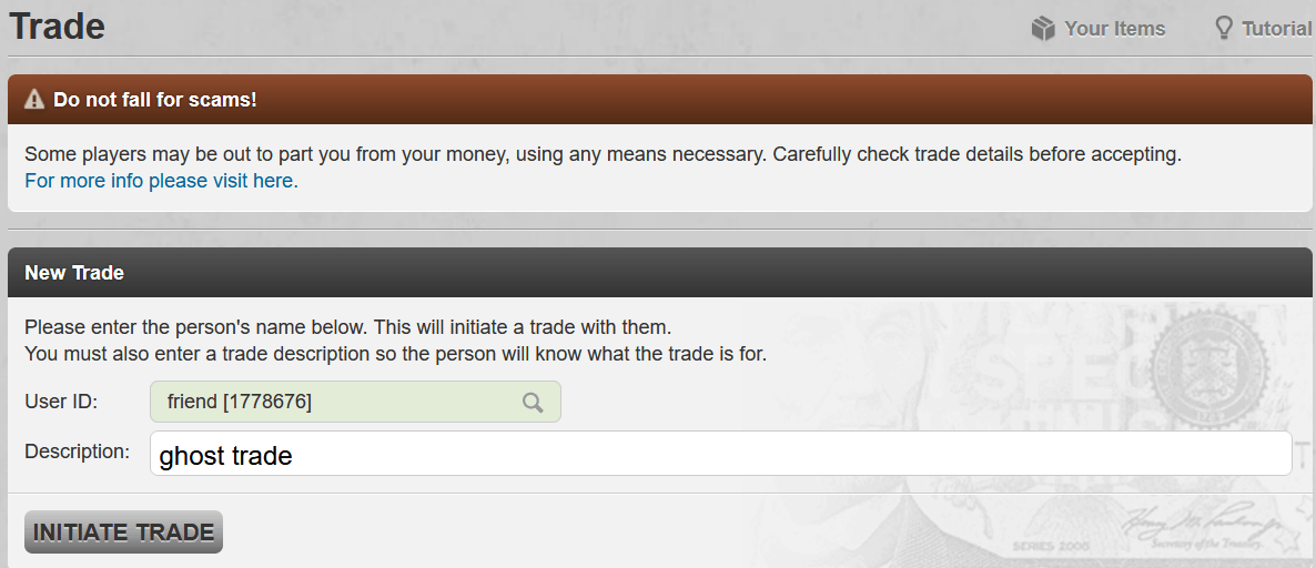 1. Enter the reason to ensure that your friend understands that its a ghost trade and he shouldn’t be checking it or accepting it. (some of the common reasons are “gh” “ghost” or “cash storage”)